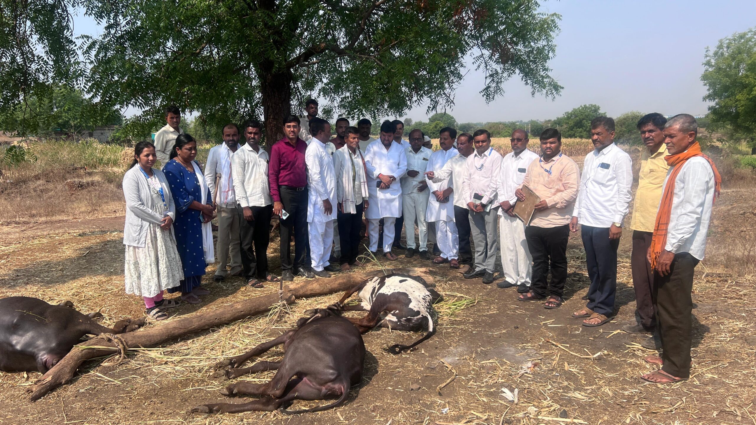 जालना तालुक्यातील सिंधी काळेगाव येथे काल रात्री झालेल्या अवकाळी पावसामुळे शेतकऱ्यांना मोठा फटका बसला. असुन शेतकरी सदाशिवराव मुळे (सर्वे नं. ५२३) यांच्या शेतात वीज कोसळून तीन जनावरे दगावल्याची दुर्दैवी घटना घडली. या घटनेमुळे परिसरात हळहळ व्यक्त होत आहे.